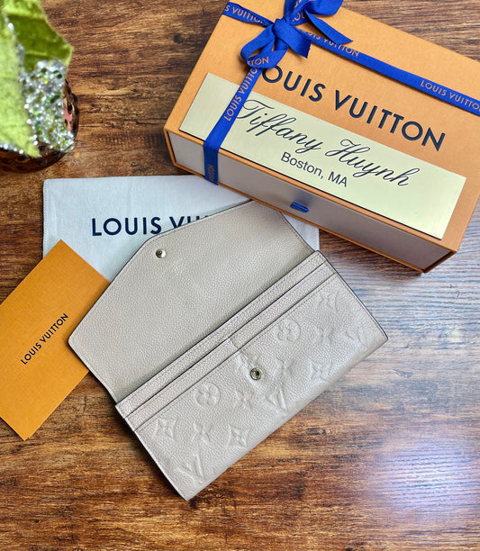 Authentic Louis Vuitton Empreinte Old Model Sarah Wallet Dune Beige